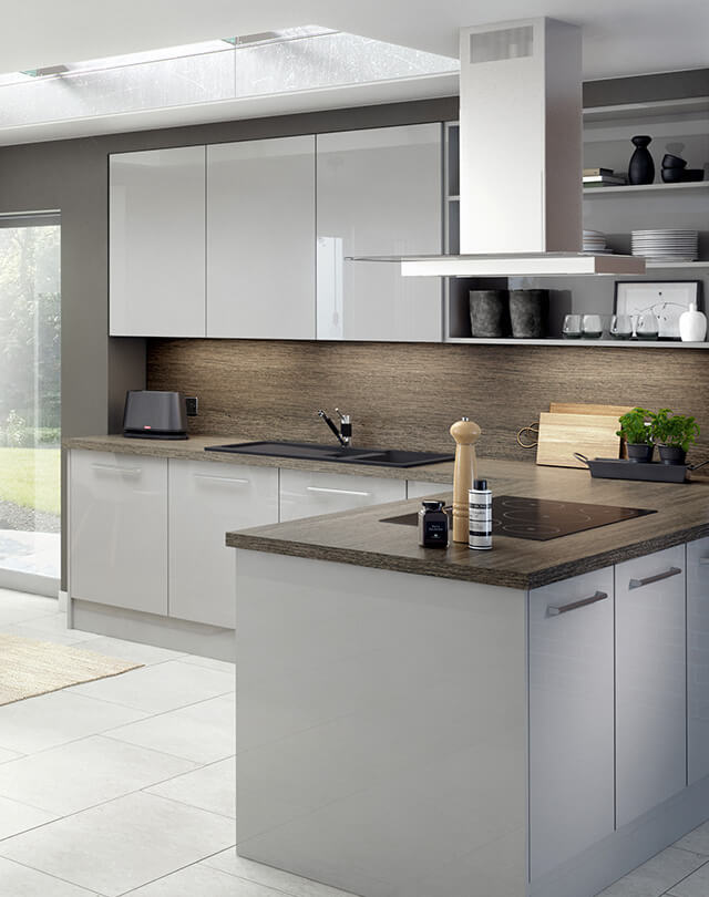 The J pull door is available in 6 gloss colours. A deep groove to the top of the door allows for ease of use. - Everything including the kitchen sink