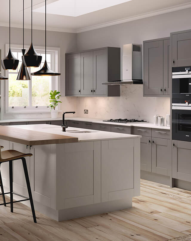 17 shaker doors. Choose from mock painted or wood effect. Available in skinny frame, broad frame or beaded for that period look. Shaker doors allow designs to be timeless, farmhouse, industrial or scandi. - Handleless