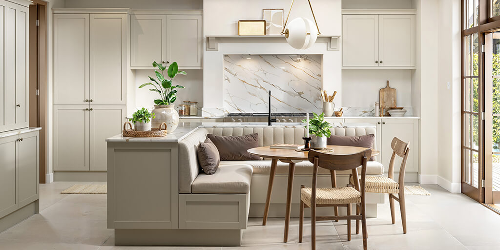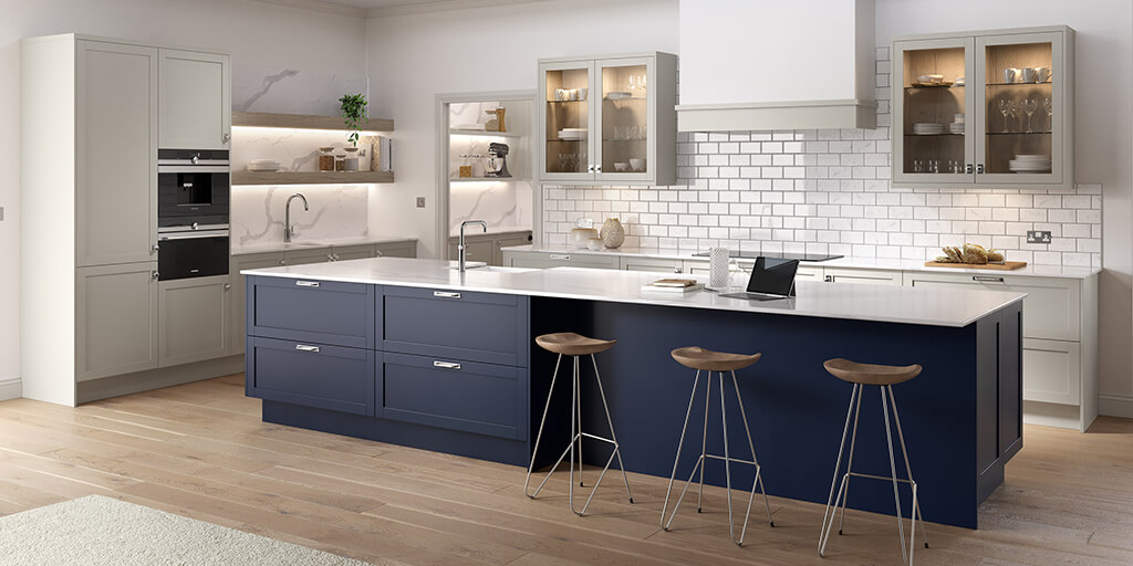 A framed panel door. Choose from broad or skinny shaker in a selection of colours. Or choose a beaded shaker in limestone for the elegant period look.